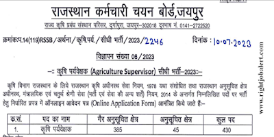 430 Agriculture Supervisor Job Recruitment - Rajasthan Subordinate and Ministerial Services Selection Board